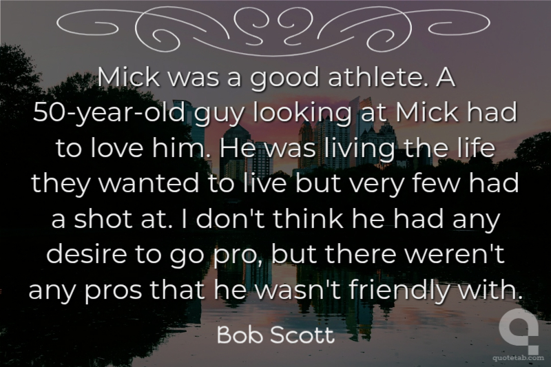 Mick was a good athlete. A 50-year-old guy looking at Mick had to love him. He was living the life they wanted to live but very few had a shot at. I don't think he had any desire to go pro, but there weren't any pros that he wasn't friendly with.