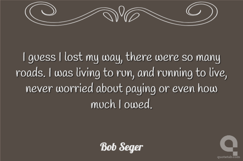 I guess I lost my way, there were so many roads. I was living to run, and running to live, never worried about paying or even how much I owed.