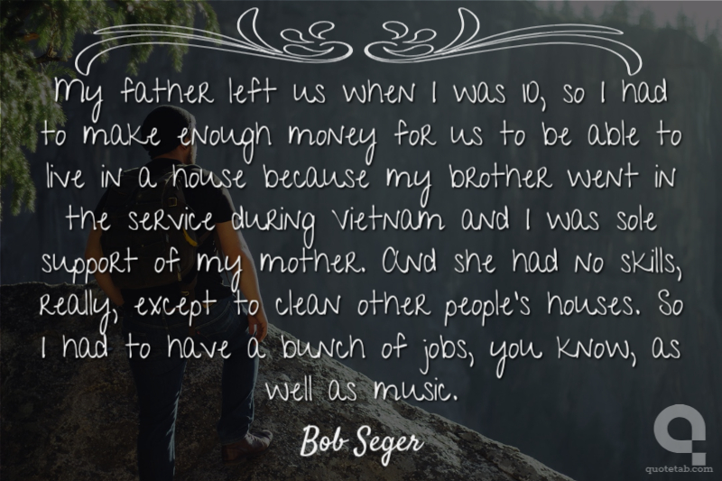 My father left us when I was 10, so I had to make enough money for us to be able to live in a house because my brother went in the service during Vietnam and I was sole support of my mother. And she had no skills, really, except to clean other people's houses. So I had to have a bunch of jobs, you know, as well as music.