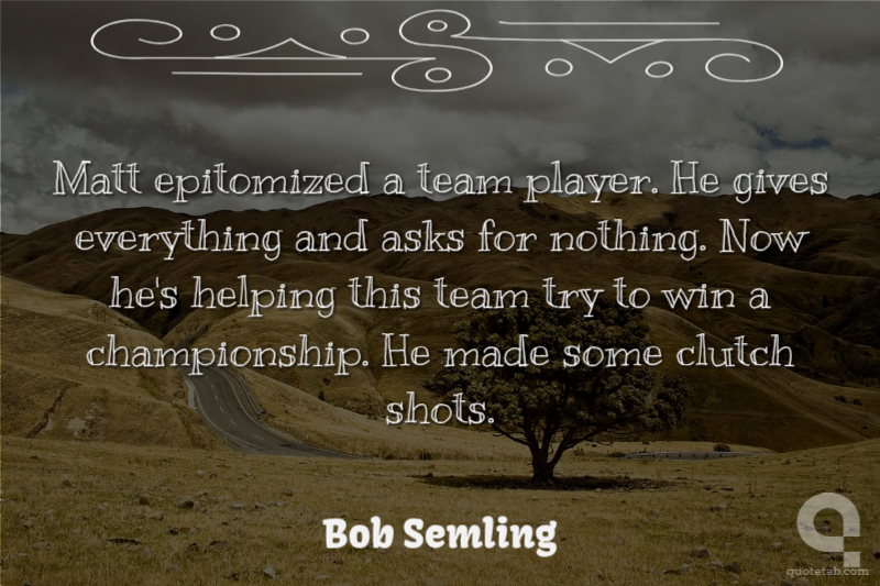 Matt epitomized a team player. He gives everything and asks for nothing. Now he's helping this team try to win a championship. He made some clutch shots.