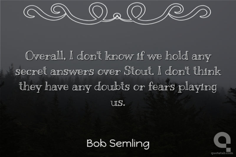 Overall, I don't know if we hold any secret answers over Stout. I don't think they have any doubts or fears playing us.