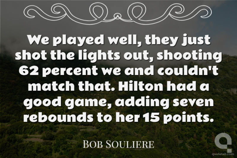We played well, they just shot the lights out, shooting 62 percent we and couldn't match that. Hilton had a good game, adding seven rebounds to her 15 points.