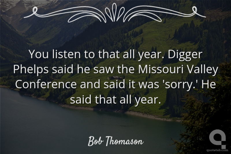 You listen to that all year. Digger Phelps said he saw the Missouri Valley Conference and said it was 'sorry.' He said that all year.
