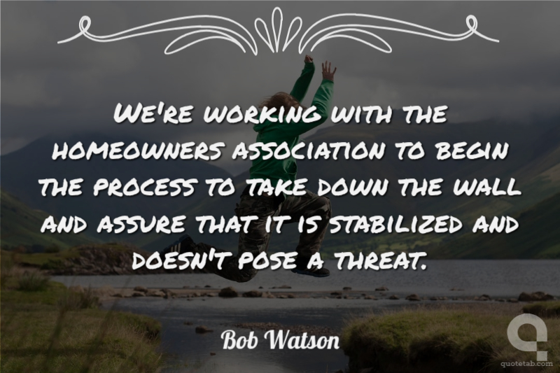 We're working with the homeowners association to begin the process to take down the wall and assure that it is stabilized and doesn't pose a threat.