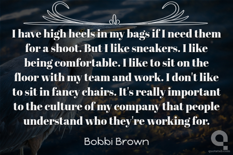 I have high heels in my bags if I need them for a shoot. But I like sneakers. I like being comfortable. I like to sit on the floor with my team and work. I don't like to sit in fancy chairs. It's really important to the culture of my company that people understand who they're working for.