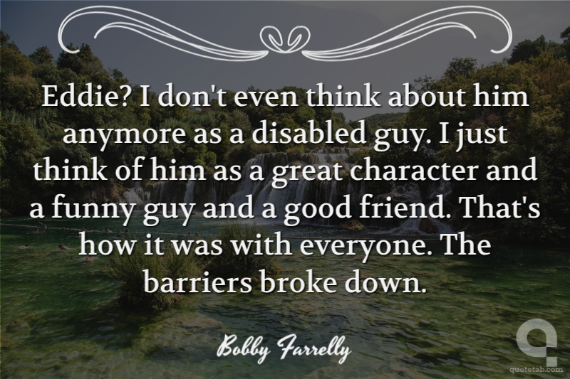 Eddie? I don't even think about him anymore as a disabled guy. I just think of him as a great character and a funny guy and a good friend. That's how it was with everyone. The barriers broke down.