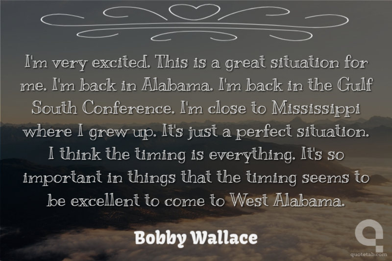 I'm very excited. This is a great situation for me. I'm back in Alabama. I'm back in the Gulf South Conference. I'm close to Mississippi where I grew up. It's just a perfect situation. I think the timing is everything. It's so important in things that the timing seems to be excellent to come to West Alabama.