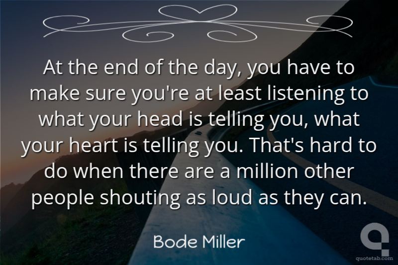 At the end of the day, you have to make sure you're at least listening to what your head is telling you, what your heart is telling you. That's hard to do when there are a million other people shouting as loud as they can.