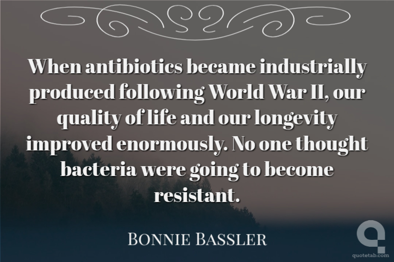 When antibiotics became industrially produced following World War II, our quality of life and our longevity improved enormously. No one thought bacteria were going to become resistant.