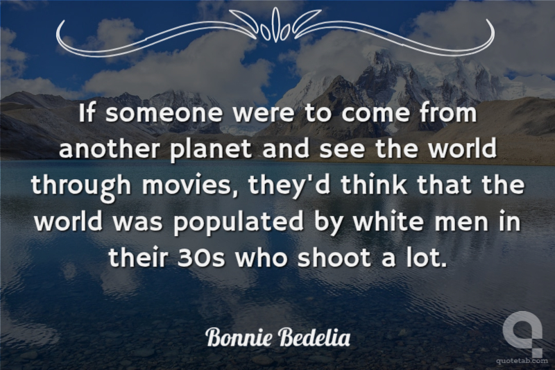 If someone were to come from another planet and see the world through movies, they'd think that the world was populated by white men in their 30s who shoot a lot.