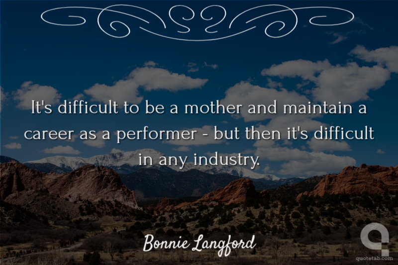 It's difficult to be a mother and maintain a career as a performer - but then it's difficult in any industry.