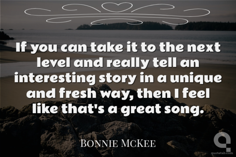 If you can take it to the next level and really tell an interesting story in a unique and fresh way, then I feel like that's a great song.
