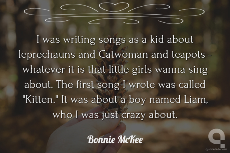 I was writing songs as a kid about leprechauns and Catwoman and teapots - whatever it is that little girls wanna sing about. The first song I wrote was called "Kitten." It was about a boy named Liam, who I was just crazy about.