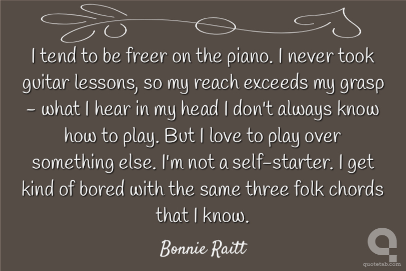 I tend to be freer on the piano. I never took guitar lessons, so my reach exceeds my grasp - what I hear in my head I don't always know how to play. But I love to play over something else. I'm not a self-starter. I get kind of bored with the same three folk chords that I know.