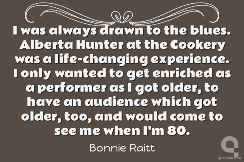 I was always drawn to the blues. Alberta Hunter at the Cookery was a life-changing experience. I only wanted to get enriched as a performer as I got older, to have an audience which got older, too, and would come to see me when I'm 80.