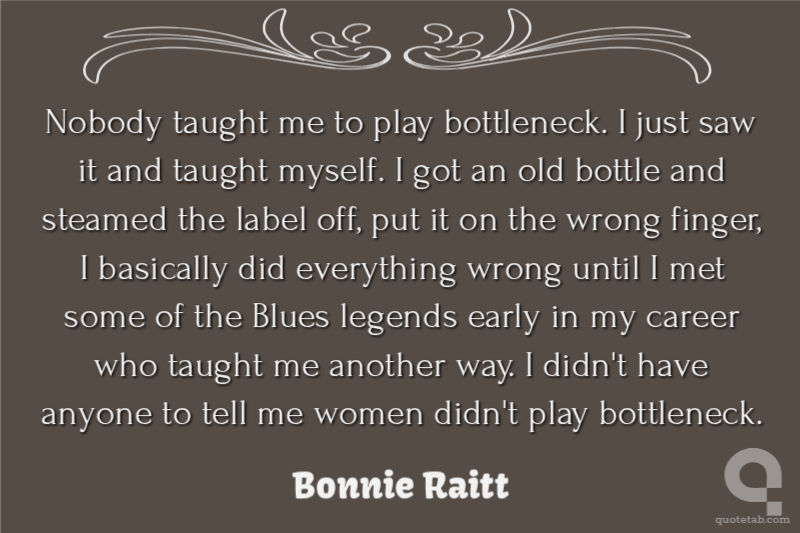 Nobody taught me to play bottleneck. I just saw it and taught myself. I got an old bottle and steamed the label off, put it on the wrong finger, I basically did everything wrong until I met some of the Blues legends early in my career who taught me another way. I didn't have anyone to tell me women didn't play bottleneck.
