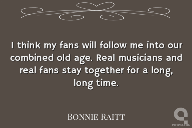 I think my fans will follow me into our combined old age. Real musicians and real fans stay together for a long, long time.