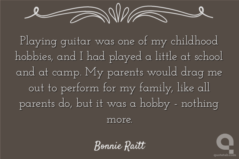 Playing guitar was one of my childhood hobbies, and I had played a little at school and at camp. My parents would drag me out to perform for my family, like all parents do, but it was a hobby - nothing more.