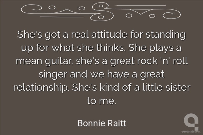She's got a real attitude for standing up for what she thinks. She plays a mean guitar, she's a great rock 'n' roll singer and we have a great relationship. She's kind of a little sister to me.