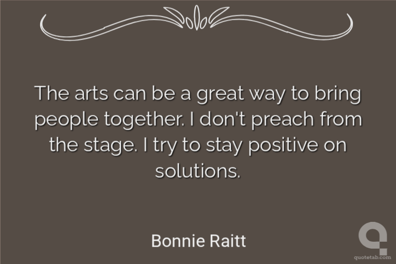 The arts can be a great way to bring people together. I don't preach from the stage. I try to stay positive on solutions.