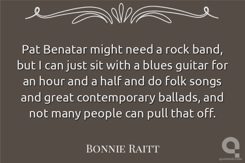 Pat Benatar might need a rock band, but I can just sit with a blues guitar for an hour and a half and do folk songs and great contemporary ballads, and not many people can pull that off.