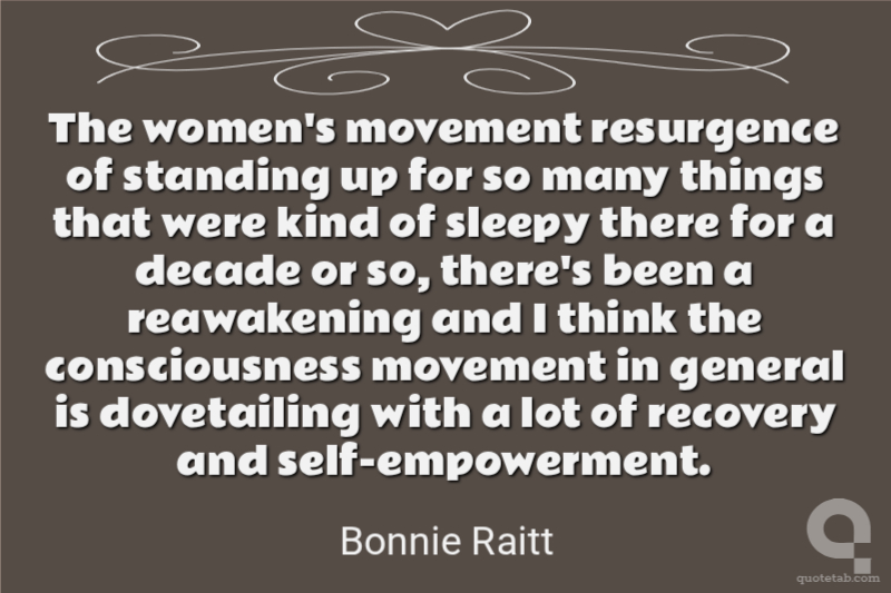The women's movement resurgence of standing up for so many things that were kind of sleepy there for a decade or so, there's been a reawakening and I think the consciousness movement in general is dovetailing with a lot of recovery and self-empowerment.