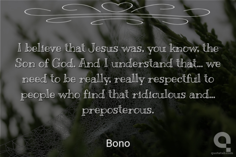 I believe that Jesus was, you know, the Son of God. And I understand that... we need to be really, really respectful to people who find that ridiculous and... preposterous.