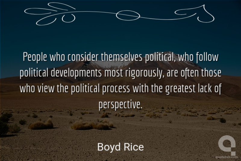People who consider themselves political, who follow political developments most rigorously, are often those who view the political process with the greatest lack of perspective.