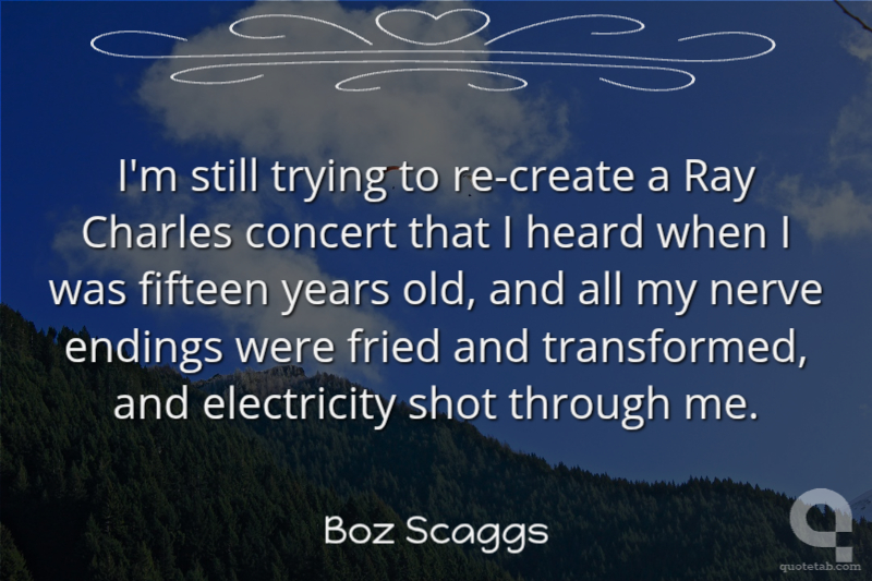 I'm still trying to re-create a Ray Charles concert that I heard when I was fifteen years old, and all my nerve endings were fried and transformed, and electricity shot through me.