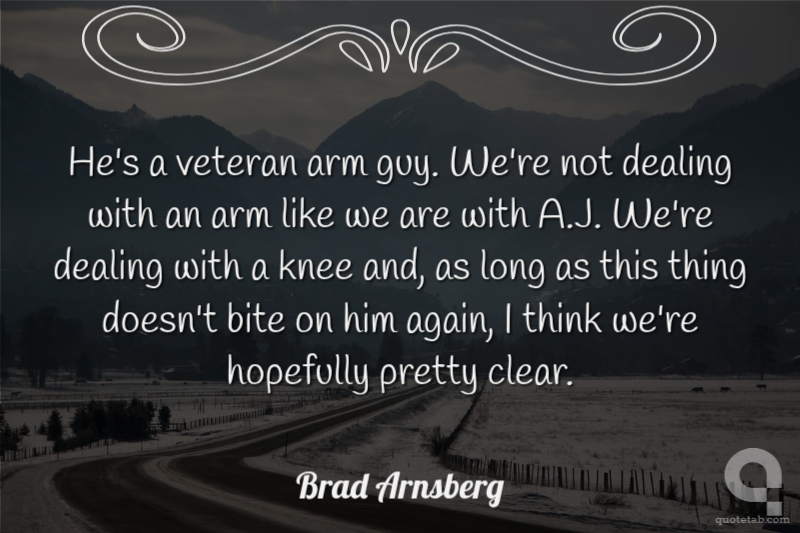 He's a veteran arm guy. We're not dealing with an arm like we are with A.J. We're dealing with a knee and, as long as this thing doesn't bite on him again, I think we're hopefully pretty clear.