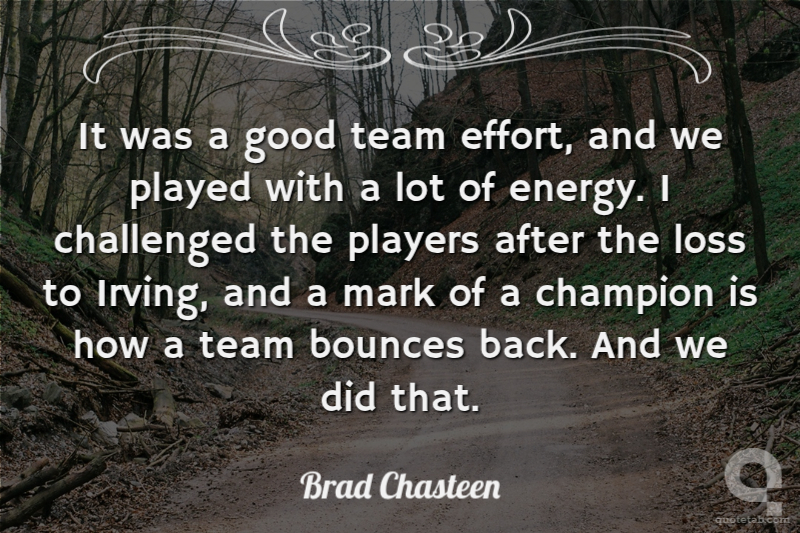 It was a good team effort, and we played with a lot of energy. I challenged the players after the loss to Irving, and a mark of a champion is how a team bounces back. And we did that.