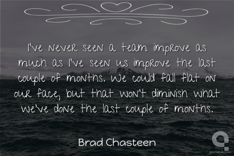 I've never seen a team improve as much as I've seen us improve the last couple of months. We could fall flat on our face, but that won't diminish what we've done the last couple of months.