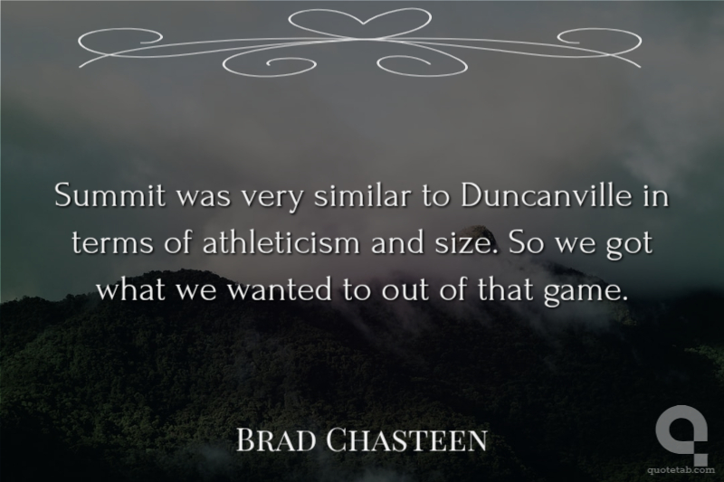Summit was very similar to Duncanville in terms of athleticism and size. So we got what we wanted to out of that game.