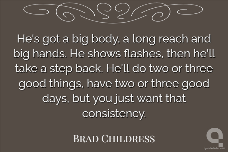 He's got a big body, a long reach and big hands. He shows flashes, then he'll take a step back. He'll do two or three good things, have two or three good days, but you just want that consistency.
