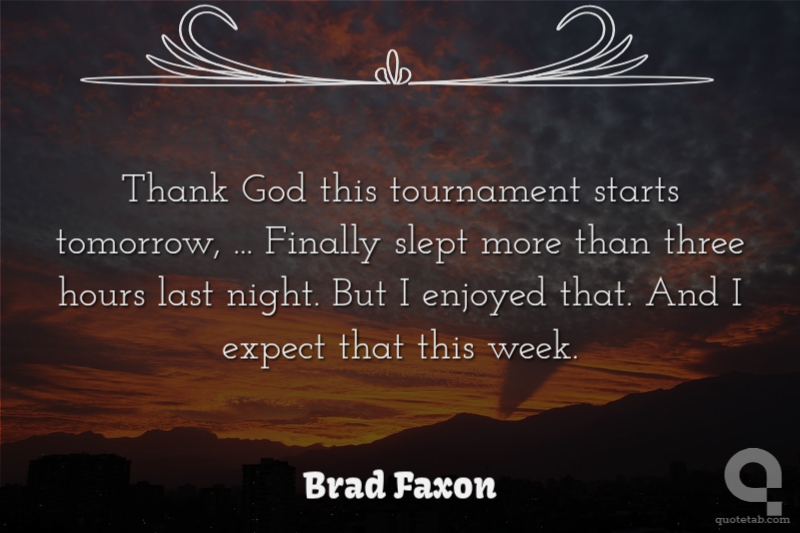 Thank God this tournament starts tomorrow, ... Finally slept more than three hours last night. But I enjoyed that. And I expect that this week.