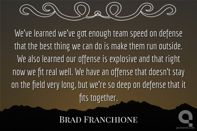 We've learned we've got enough team speed on defense that the best thing we can do is make them run outside. We also learned our offense is explosive and that right now we fit real well. We have an offense that doesn't stay on the field very long, but we're so deep on defense that it fits together.