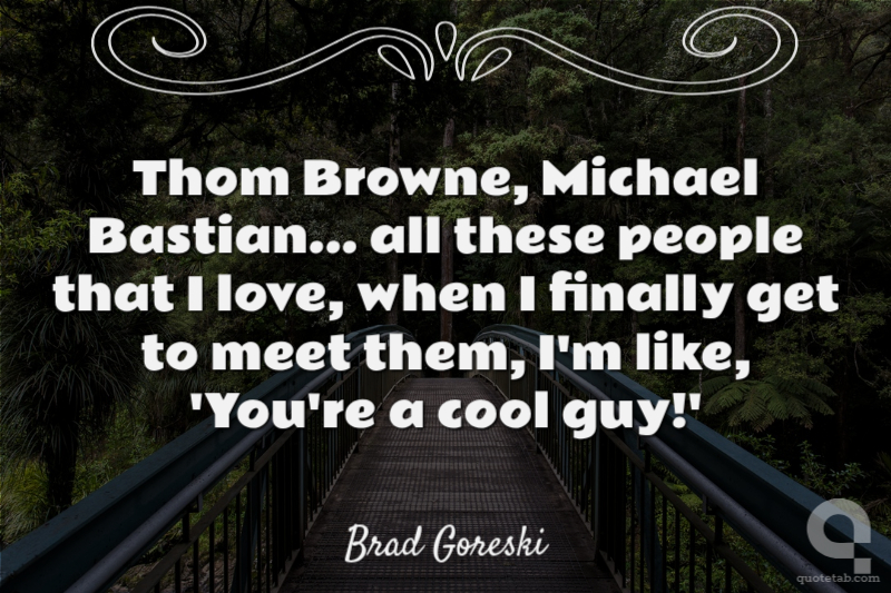 Thom Browne, Michael Bastian... all these people that I love, when I finally get to meet them, I'm like, 'You're a cool guy!'