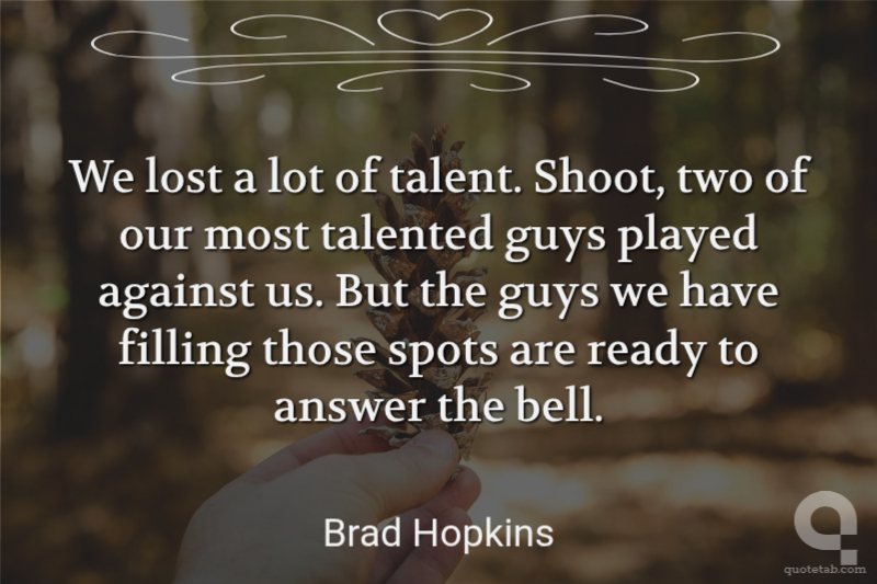 We lost a lot of talent. Shoot, two of our most talented guys played against us. But the guys we have filling those spots are ready to answer the bell.