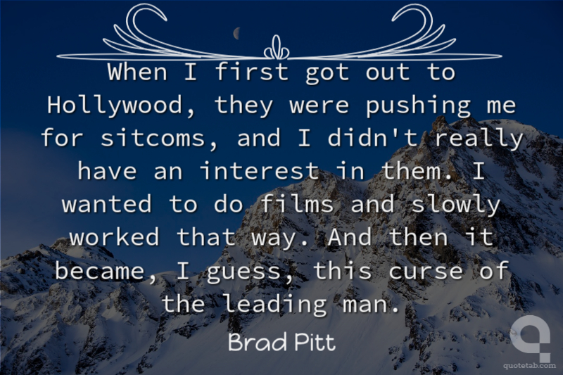 When I first got out to Hollywood, they were pushing me for sitcoms, and I didn't really have an interest in them. I wanted to do films and slowly worked that way. And then it became, I guess, this curse of the leading man.