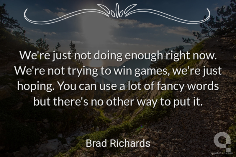 We're just not doing enough right now. We're not trying to win games, we're just hoping. You can use a lot of fancy words but there's no other way to put it.