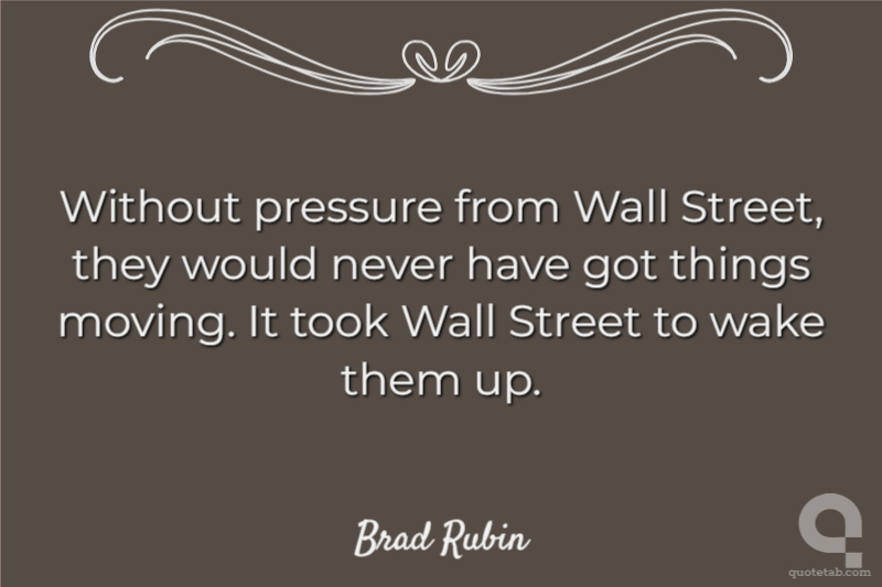 Without pressure from Wall Street, they would never have got things moving. It took Wall Street to wake them up.