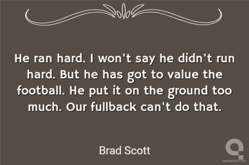 He ran hard. I won't say he didn't run hard. But he has got to value the football. He put it on the ground too much. Our fullback can't do that.