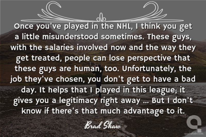 Once you've played in the NHL, I think you get a little misunderstood sometimes. These guys, with the salaries involved now and the way they get treated, people can lose perspective that these guys are human, too. Unfortunately, the job they've chosen, you don't get to have a bad day. It helps that I played in this league; it gives you a legitimacy right away ... But I don't know if there's that much advantage to it.