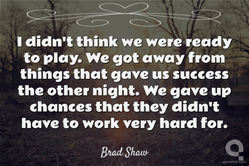 I didn't think we were ready to play. We got away from things that gave us success the other night. We gave up chances that they didn't have to work very hard for.