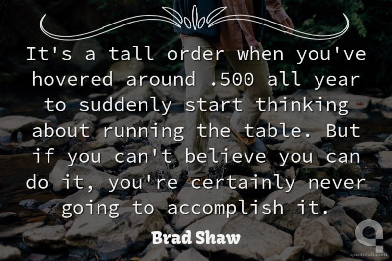 It's a tall order when you've hovered around .500 all year to suddenly start thinking about running the table. But if you can't believe you can do it, you're certainly never going to accomplish it.