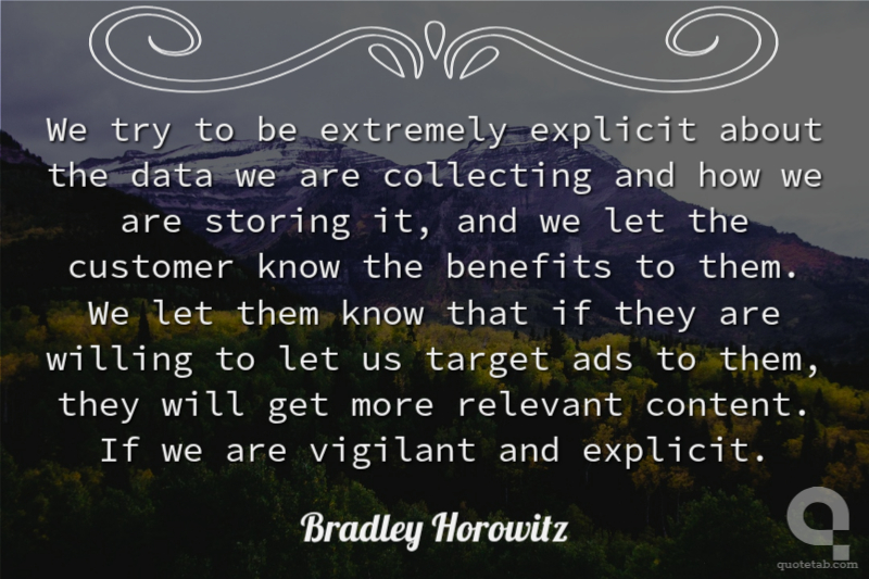 We try to be extremely explicit about the data we are collecting and how we are storing it, and we let the customer know the benefits to them. We let them know that if they are willing to let us target ads to them, they will get more relevant content. If we are vigilant and explicit.