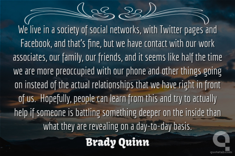 We live in a society of social networks, with Twitter pages and Facebook, and that’s fine, but we have contact with our work associates, our family, our friends, and it seems like half the time we are more preoccupied with our phone and other things going on instead of the actual relationships that we have right in front of us. Hopefully, people can learn from this and try to actually help if someone is battling something deeper on the inside than what they are revealing on a day-to-day basis.