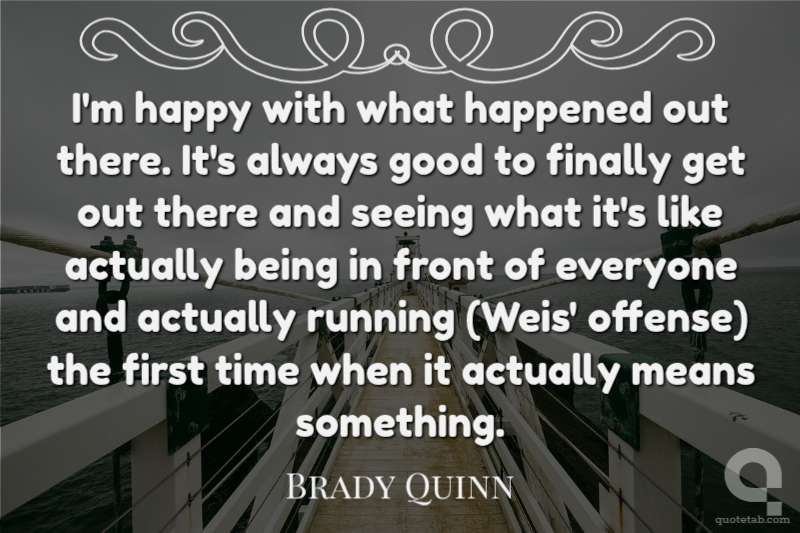 I'm happy with what happened out there. It's always good to finally get out there and seeing what it's like actually being in front of everyone and actually running (Weis' offense) the first time when it actually means something.