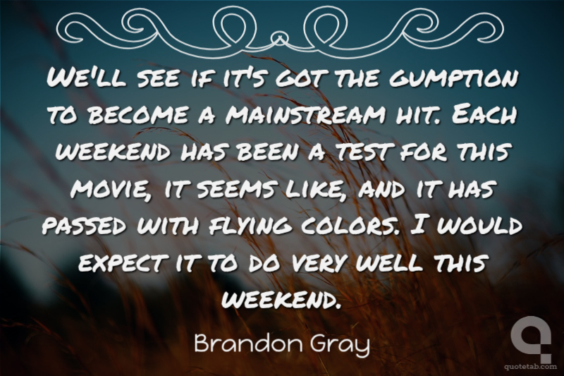 We'll see if it's got the gumption to become a mainstream hit. Each weekend has been a test for this movie, it seems like, and it has passed with flying colors. I would expect it to do very well this weekend.