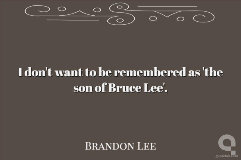 I don't want to be remembered as 'the son of Bruce Lee'.